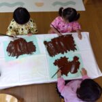 お芋の写真を見ると、ほるしぐさを手で表現し、お芋ほりを楽しみに待つ子どもたち。 先日のお芋ほりでは、土の中から、お芋の頭を見つけると、両手で一生懸命に掘る姿が見られました。 「ながーい」とツルを持ってみたり… 掘ったお芋...