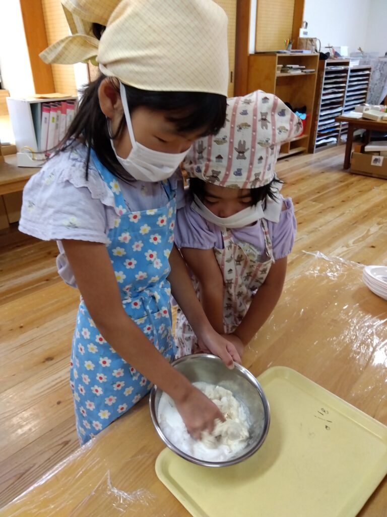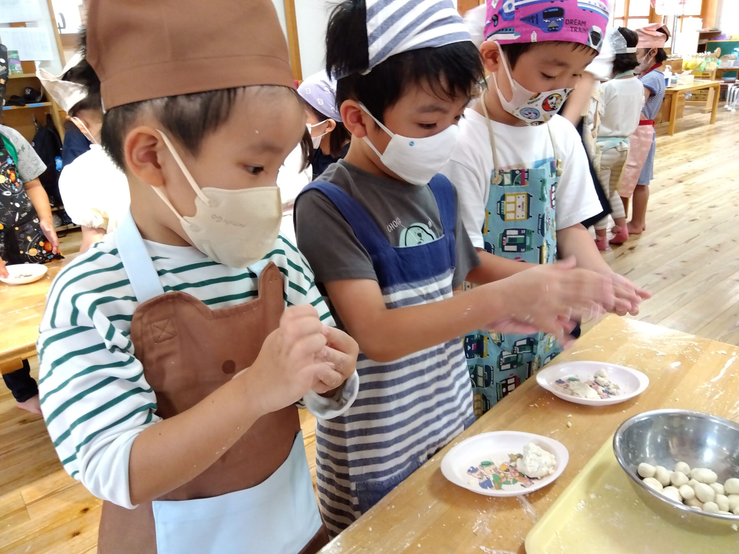 それぞれが「口に入るサイズはどれくらいかな?」と考えながら、楽しんで丸めていました。