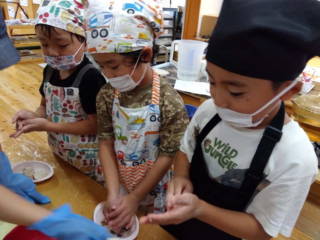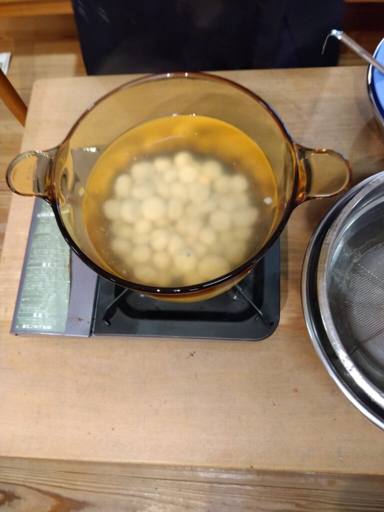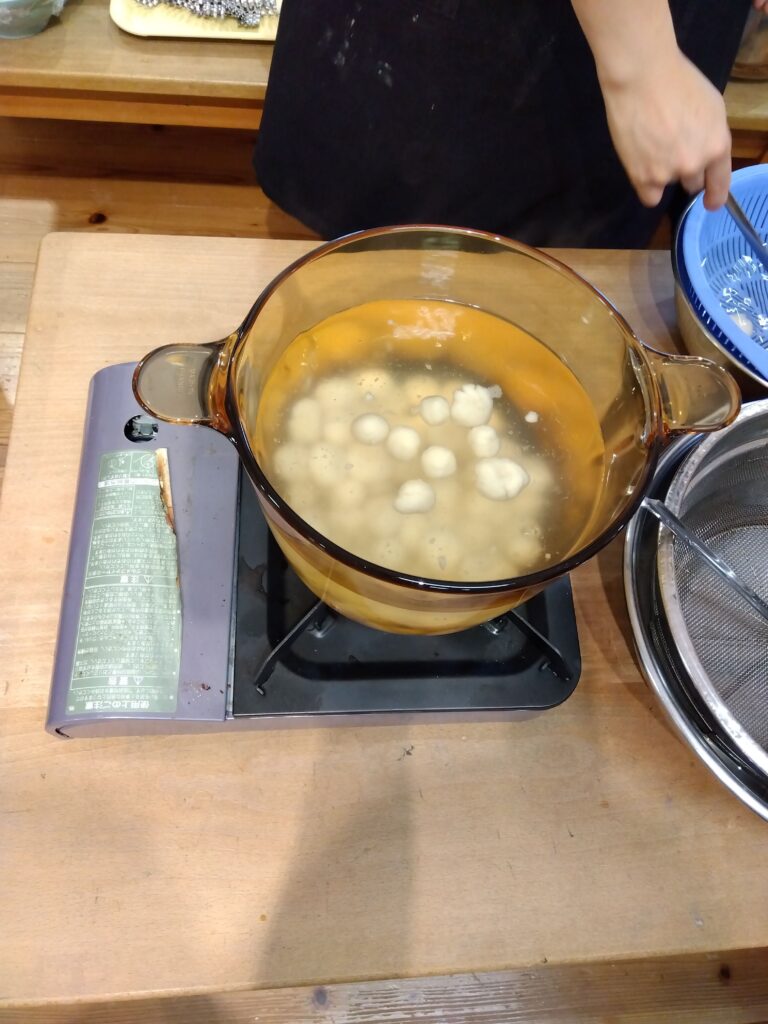 完成したおだんごを、グループごとに鍋で茹で、「わぁ!浮いてきたよ!」と大喜びの声が聞こえてきました。