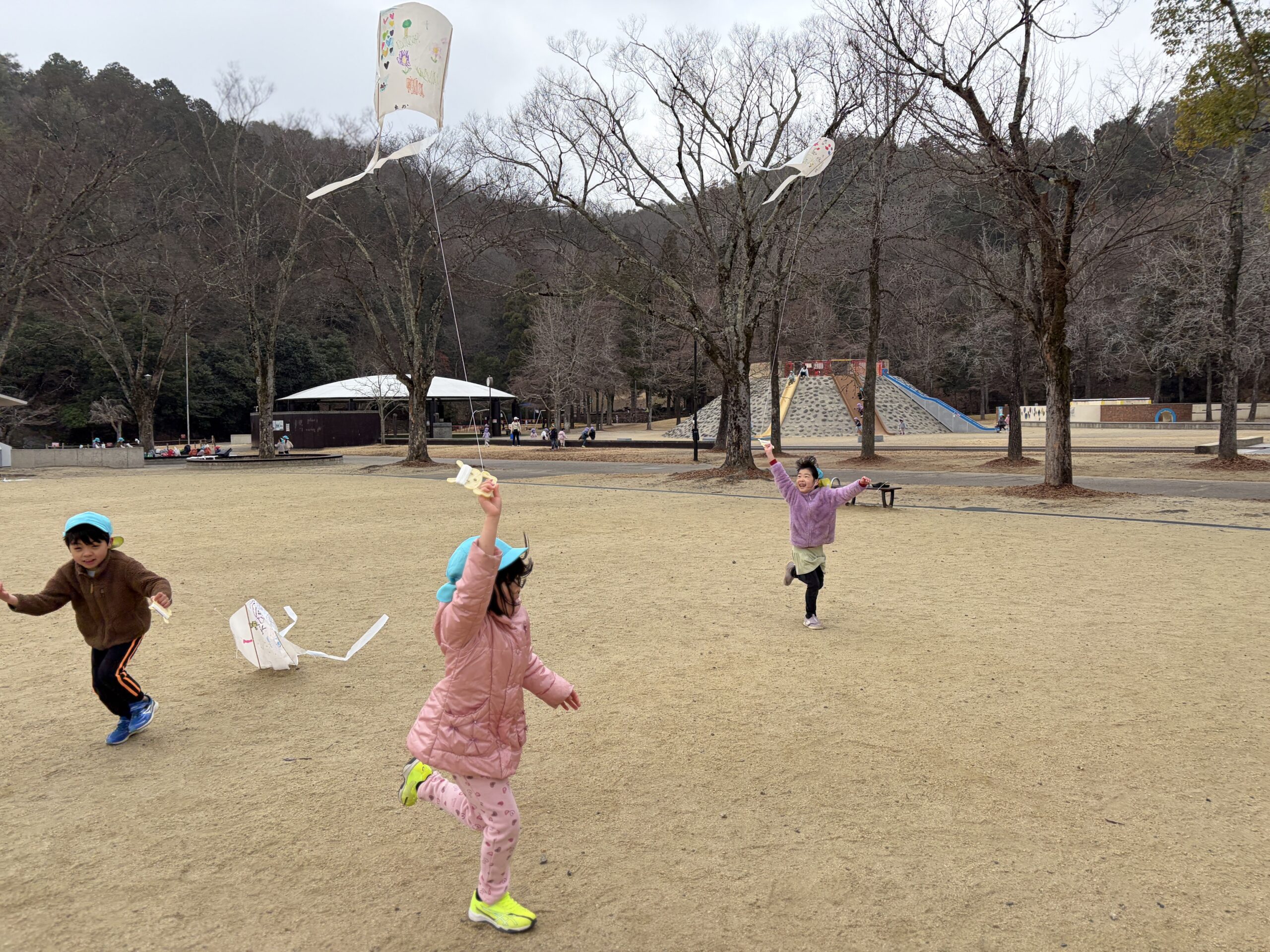 風を切って、空高く揚がる凧にうれしそうな子どもたちでした。