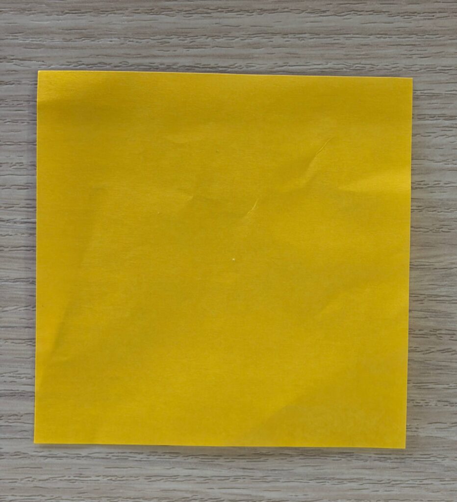 折紙を一枚もらい、「この折紙にある点がみんなの最初の大きさだよ」と教えてもらいました。