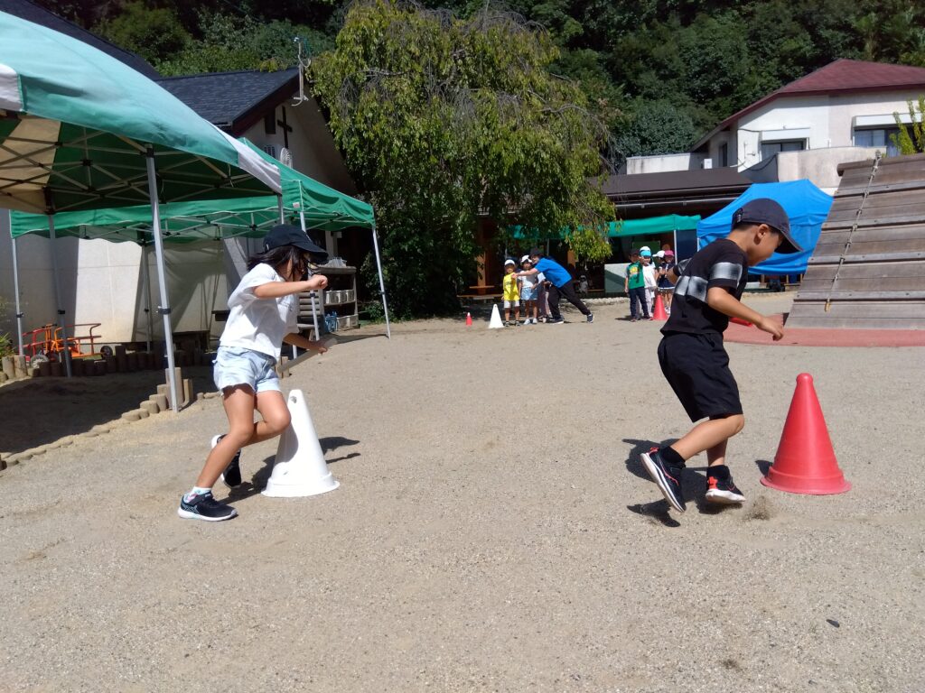 2人一組になって、あるものを運んで行きます。こちらはいろいろなハプニングが起こり、慌てたり、笑い声が聞こえたりする楽しいリレーです。