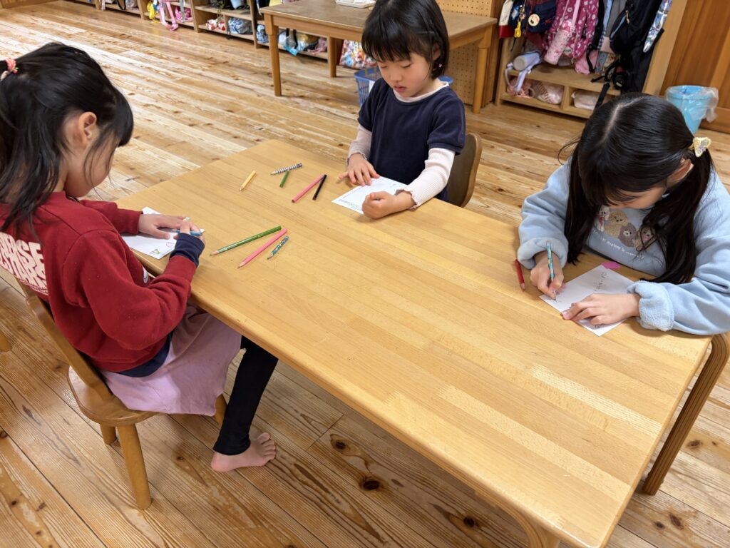 いつも一緒に過ごしている友だちにも、幼稚園でお手紙出してみない?と言うと、大喜びの子どもたち。