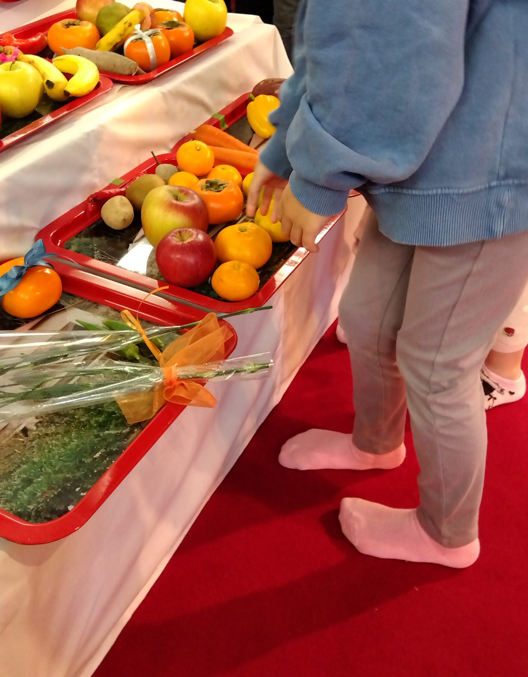 みんなが毎日美味しく食事が食べられるのも、野菜や果物、食べ物を育てたりお世話してくれる人、食べ物を届けてくれる人、お料理してくれる人、そしてそれら全てをつくり、見守ってくださる神さまへ一人ひとり感謝の気持ちをこめて、一人ひとりお祈りしました。