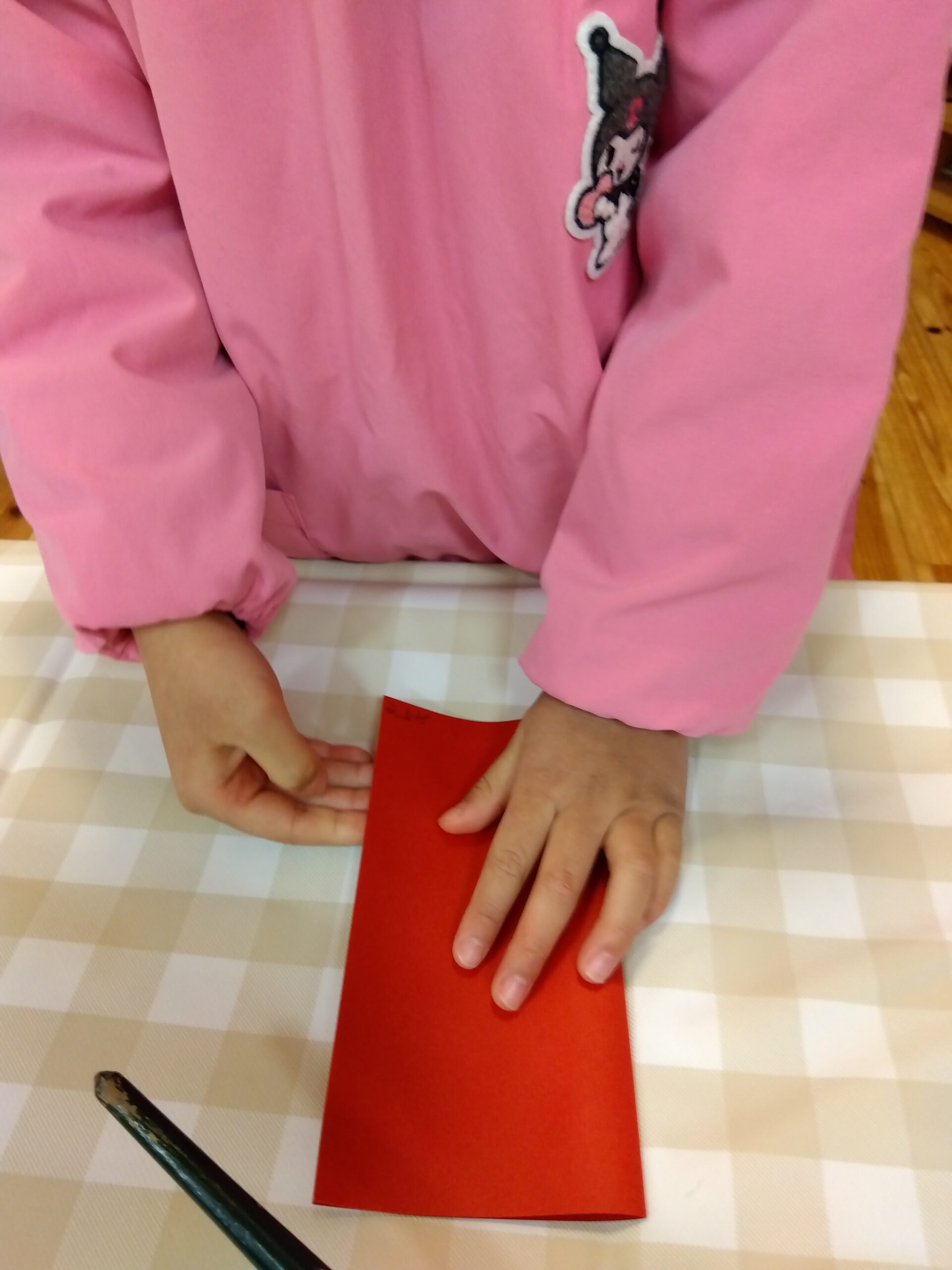 「かわいい鬼がいいな、目をハートにしよう」「角はシマシマがいい」「眉毛は太くしよう」など考えながら、好きな色の画用紙を見つけて切りました。