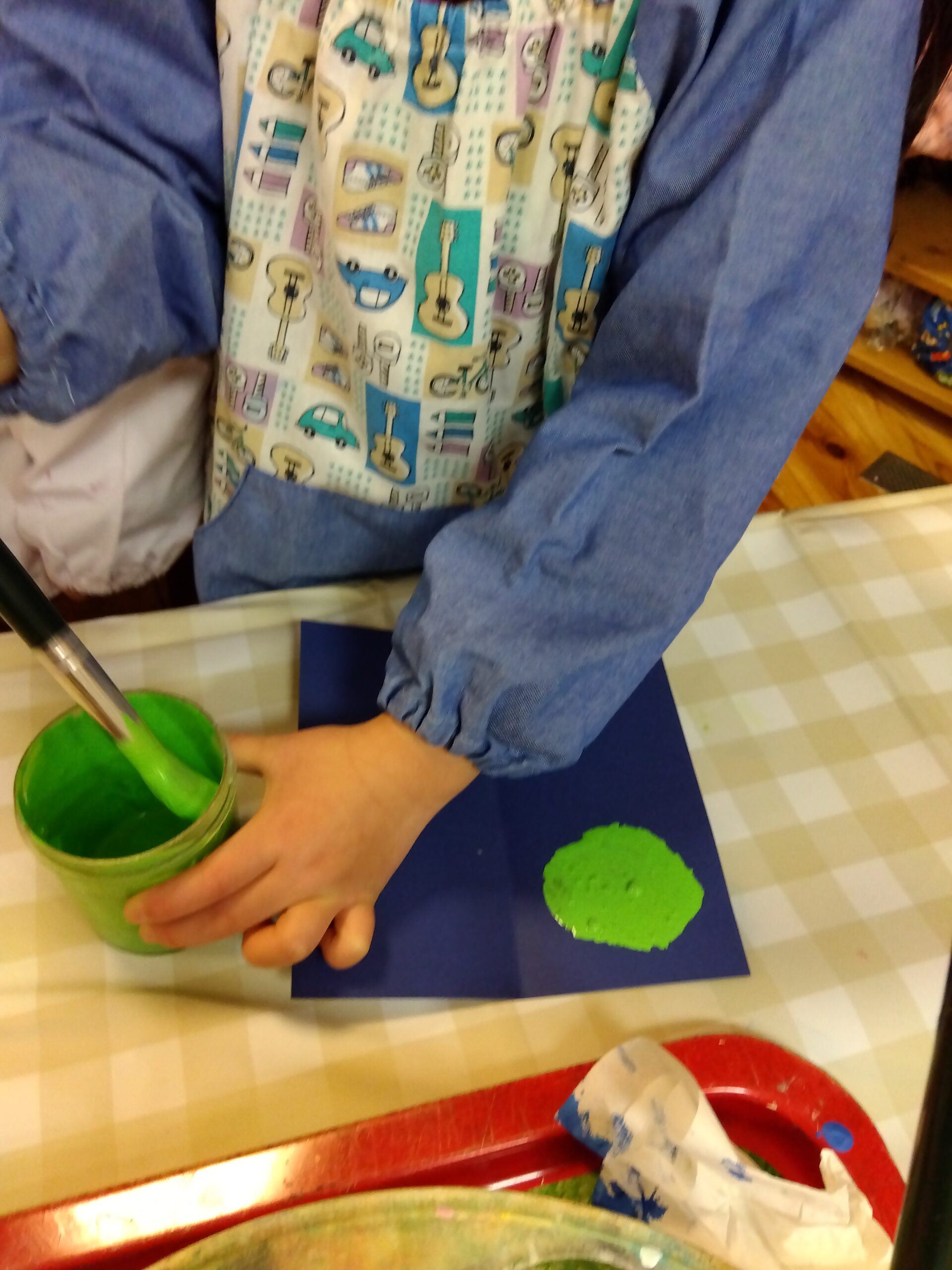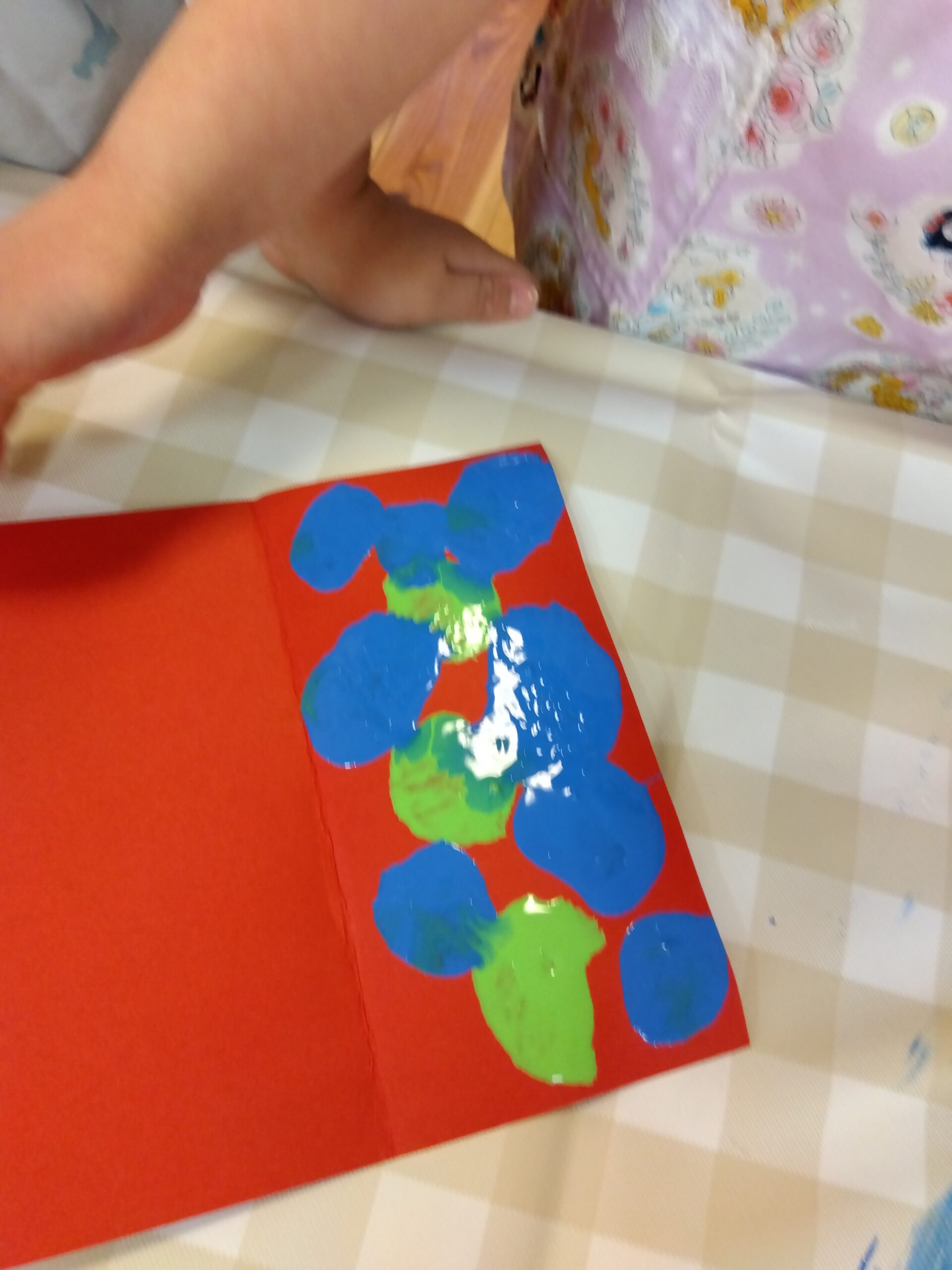 どんな模様になるかな?と好きな色の絵の具を使い楽しみました。