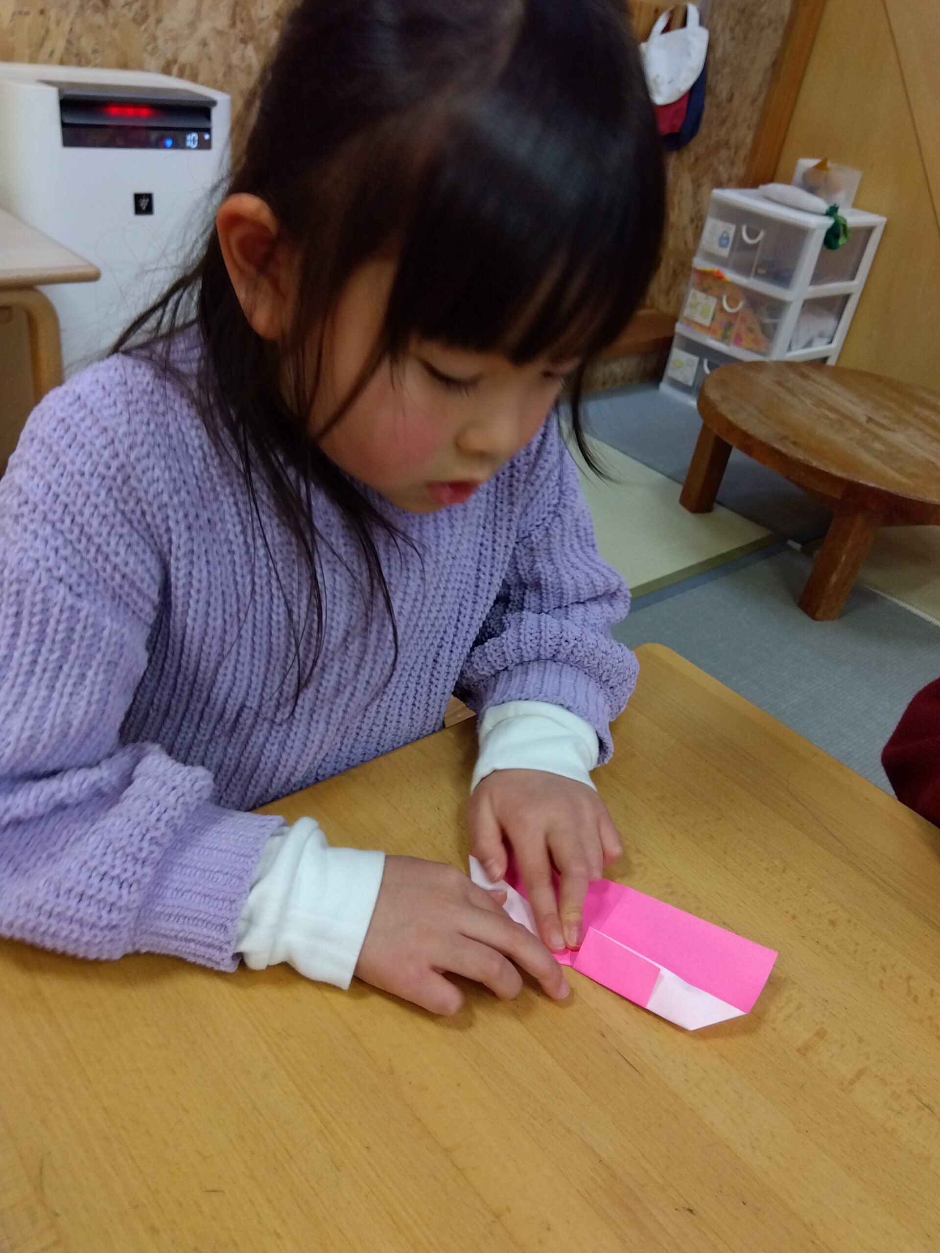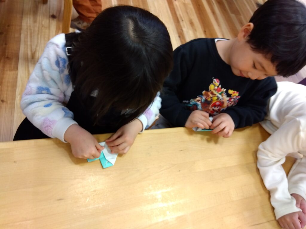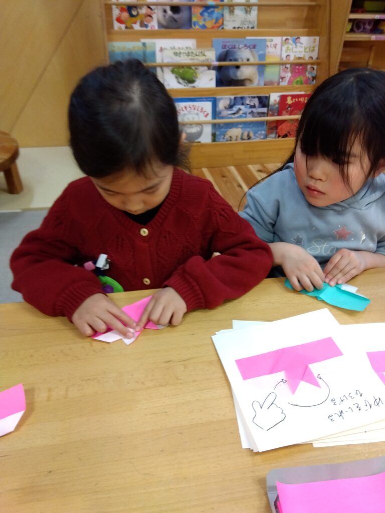 お部屋でも自分で作りたいものを考え、作り方を見ながらじっくり制作や折り紙を楽しむ姿も見られます。