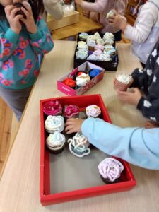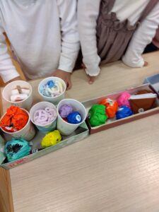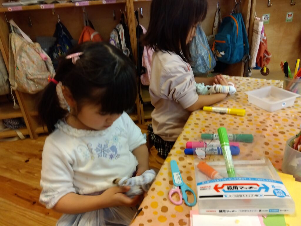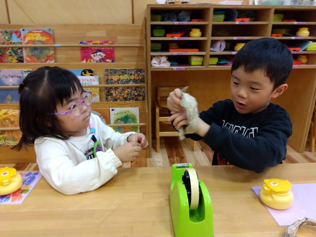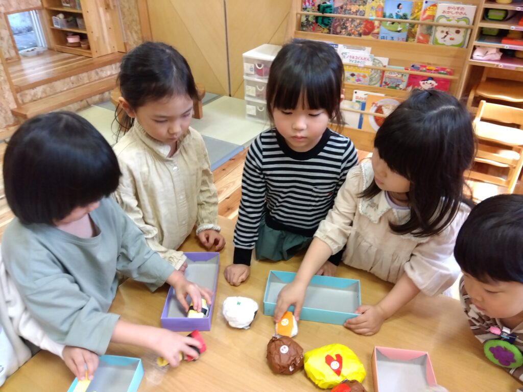 「私も作ってみたい!」とお友だちの作品を見ながら作りたくなったお友だちや、「手伝って!」と協力する姿も!沢山の商品が完成しました。