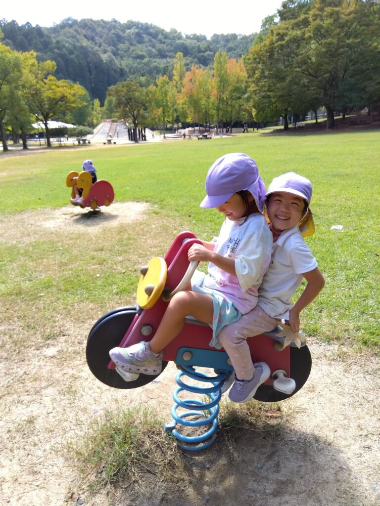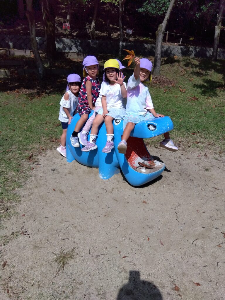 園庭でも、友だちを誘い合って鬼ごっこをよく楽しんでいるぶどう組なので、広い広場でいろいろな集団ゲームなども楽しめたらいいなと思っています。
