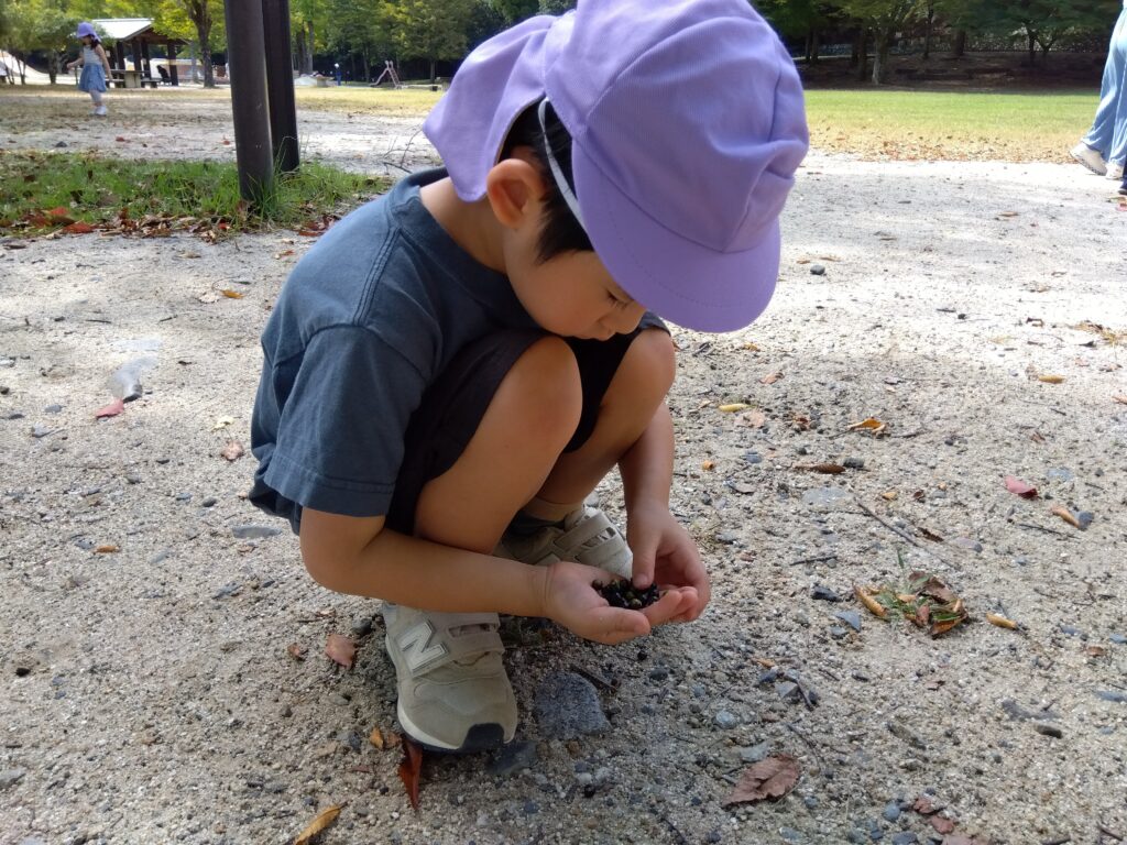 外へ出かけると、季節の移り変わりを様々なところで感じます。葉っぱの色が変わってきたな、とか咲いてる花が変わったな、とか子ども達なりの季節の変化に気付きながら遊びたいと思います。