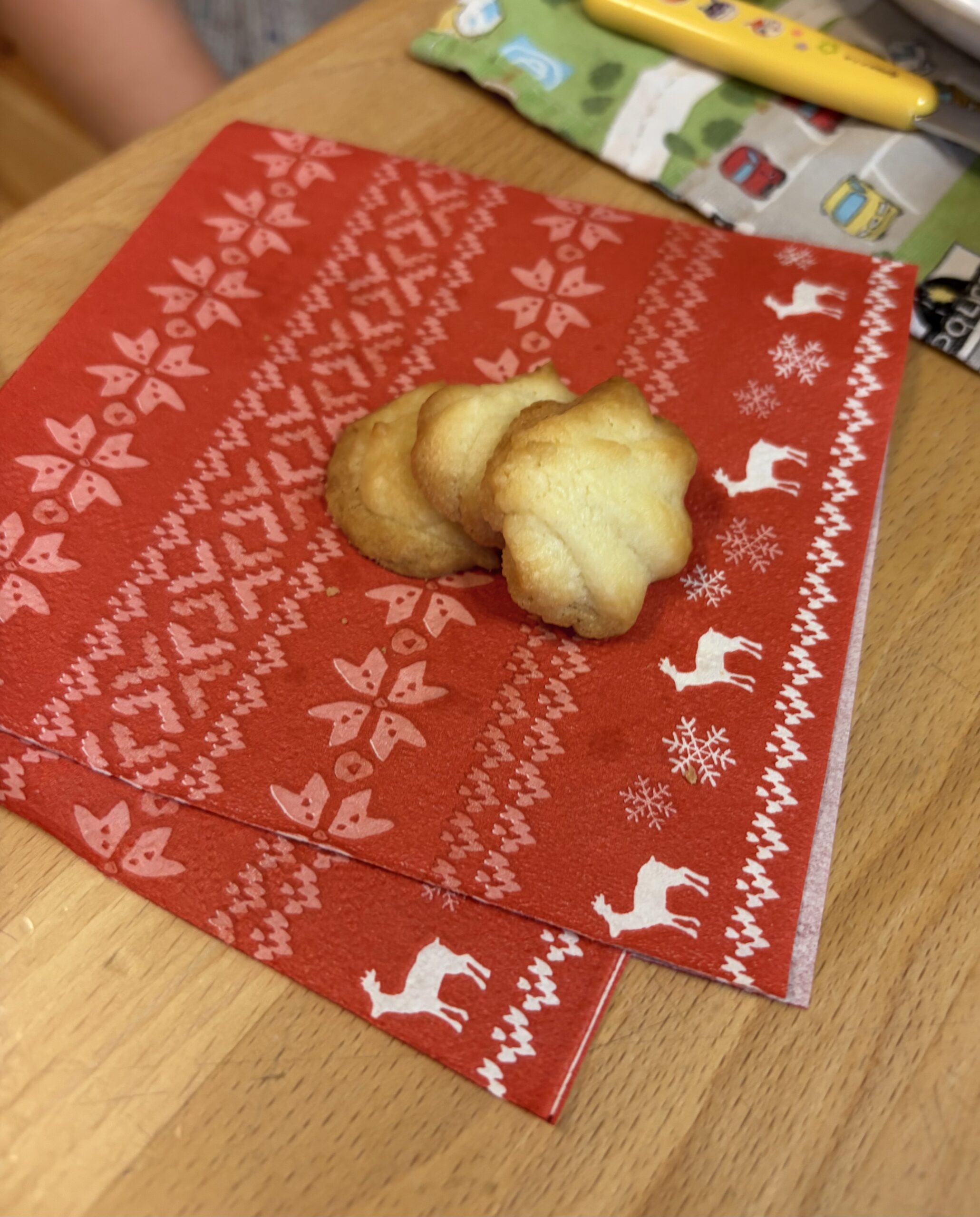 お星さまから届いたレシピと材料を使い、先日クッキングをしました。今回はクリスマスクッキーを作りました🎄