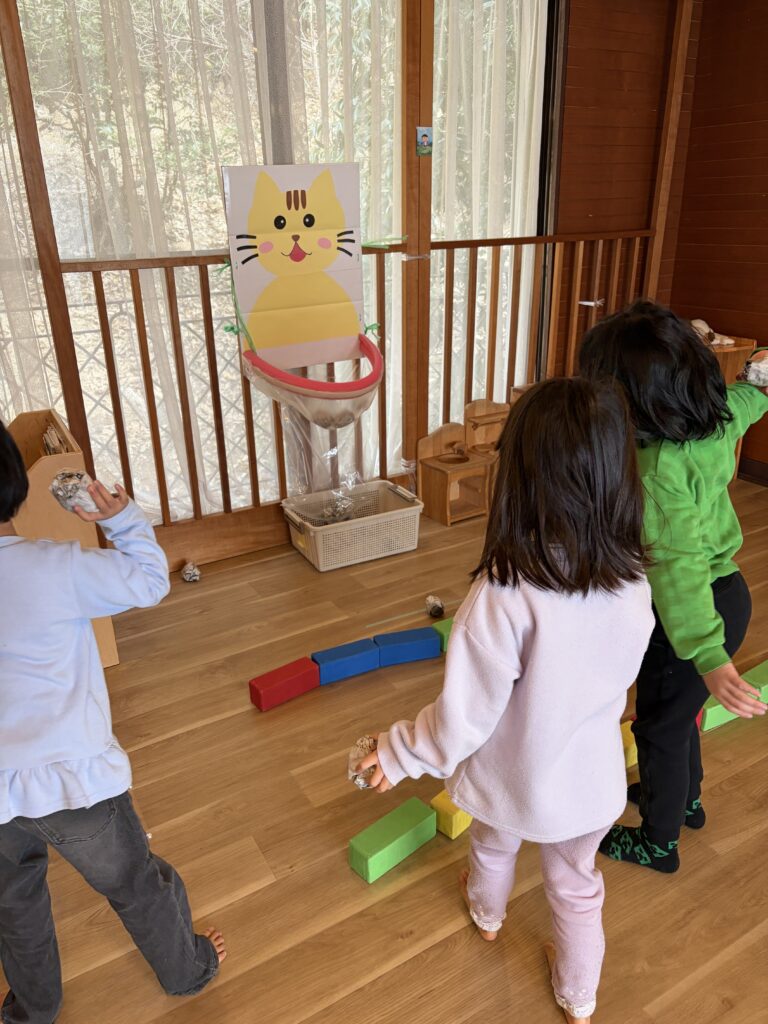 みんな上手にボールを投げて、ゴールに入ると大喜びで大盛り上がりでした!