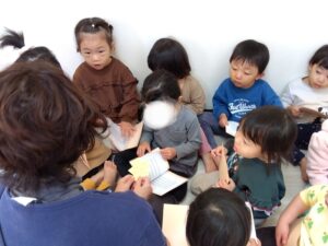 箱の中にはうたの本(歌集)があり、名前が書かれた自分のうたの本をうれしそうにめくる子どもたちでした。