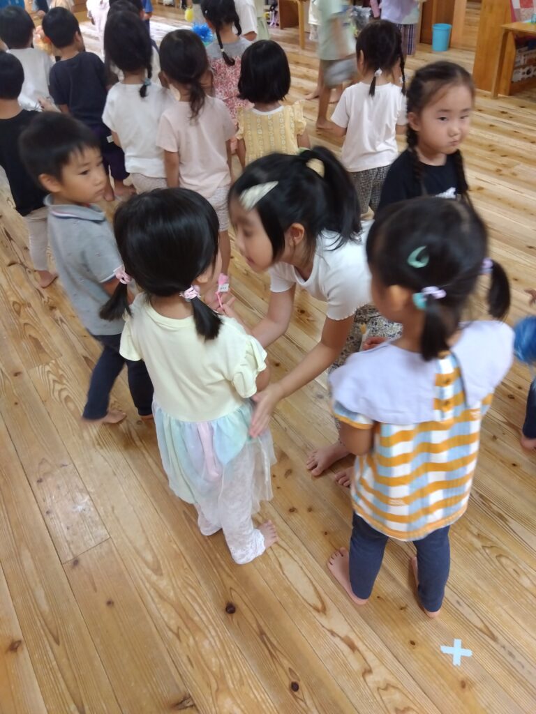 そらぐみさんたちが「ここに手を通して持つんだよ」「私の貸してあげるね」「ここは、シャラシャラ〜って、虹みたいに踊るんだよ」と、とても優しく教えてくれました!