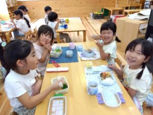 うさぎぐみとランチルームに分かれ、そこにそらぐみさんたちが一緒に食べに来てくれました🍴