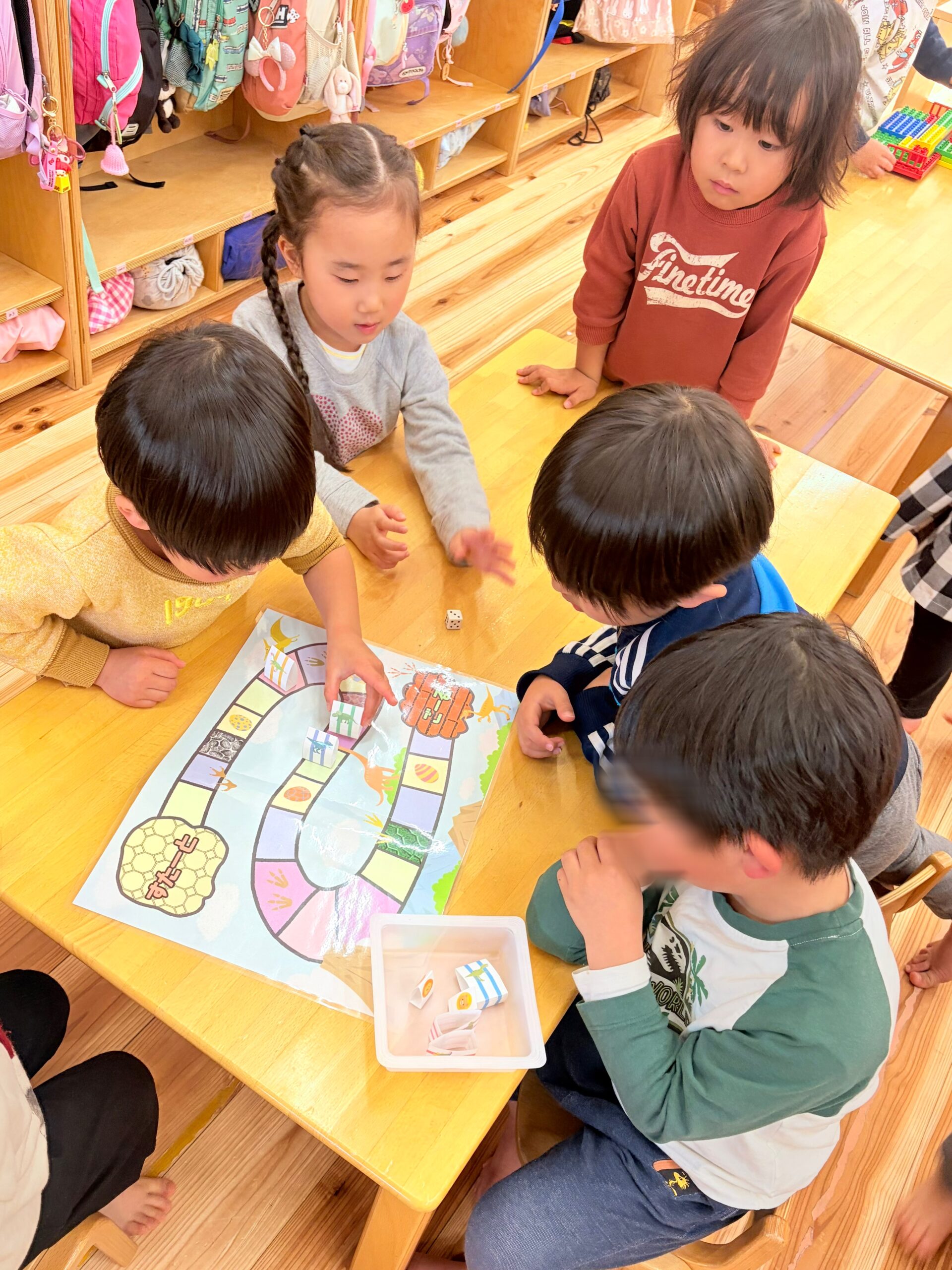 初めは先生がついていないと順番を抜かしてしまったたり、コマの進め方がわからず止まってしまったりしていたのに、今では子どもたちだけで進めることができていました。