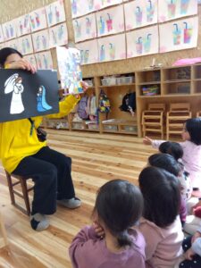 今年の歌の本の表紙には「3人の博士」が描かれていましたが、もらった当初はまだお話をしていなかったため、王冠を被っている姿を見て「王様だ!」と言っていた子どもたちも、お話を聞いた後には「あれは博士だったのか〜」とすっかりなじみを持っていました。
