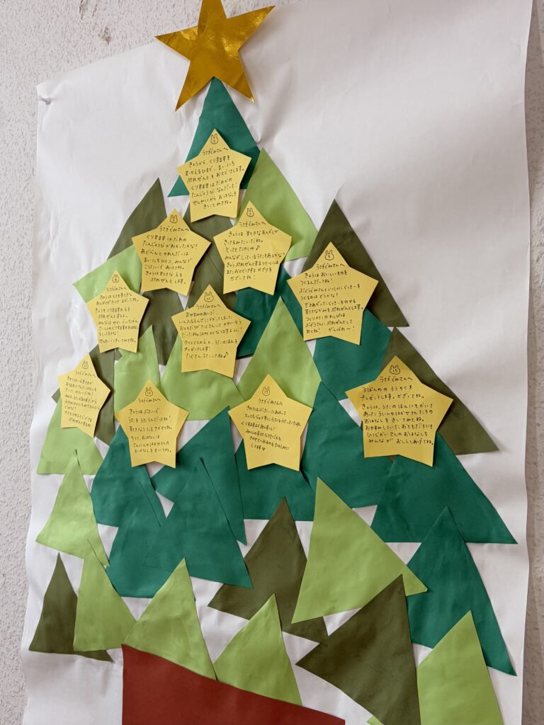 クリスマスツリーの飾りが届いたり、歌の本が届いたり、窓に飾るクリスマスの絵が届いたりしました。