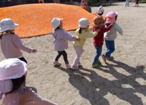 昨日、今日といちごぐみさんと一緒に外でダンスをしました。