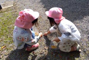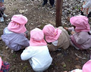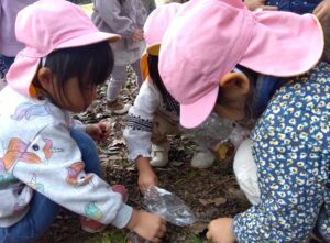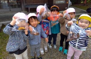その後は下に降り、どんぐりは落ちてないかな?と探しているとたくさんあり♪どんぐりころころの歌をうたいながら拾う可愛らしい子どもたち。