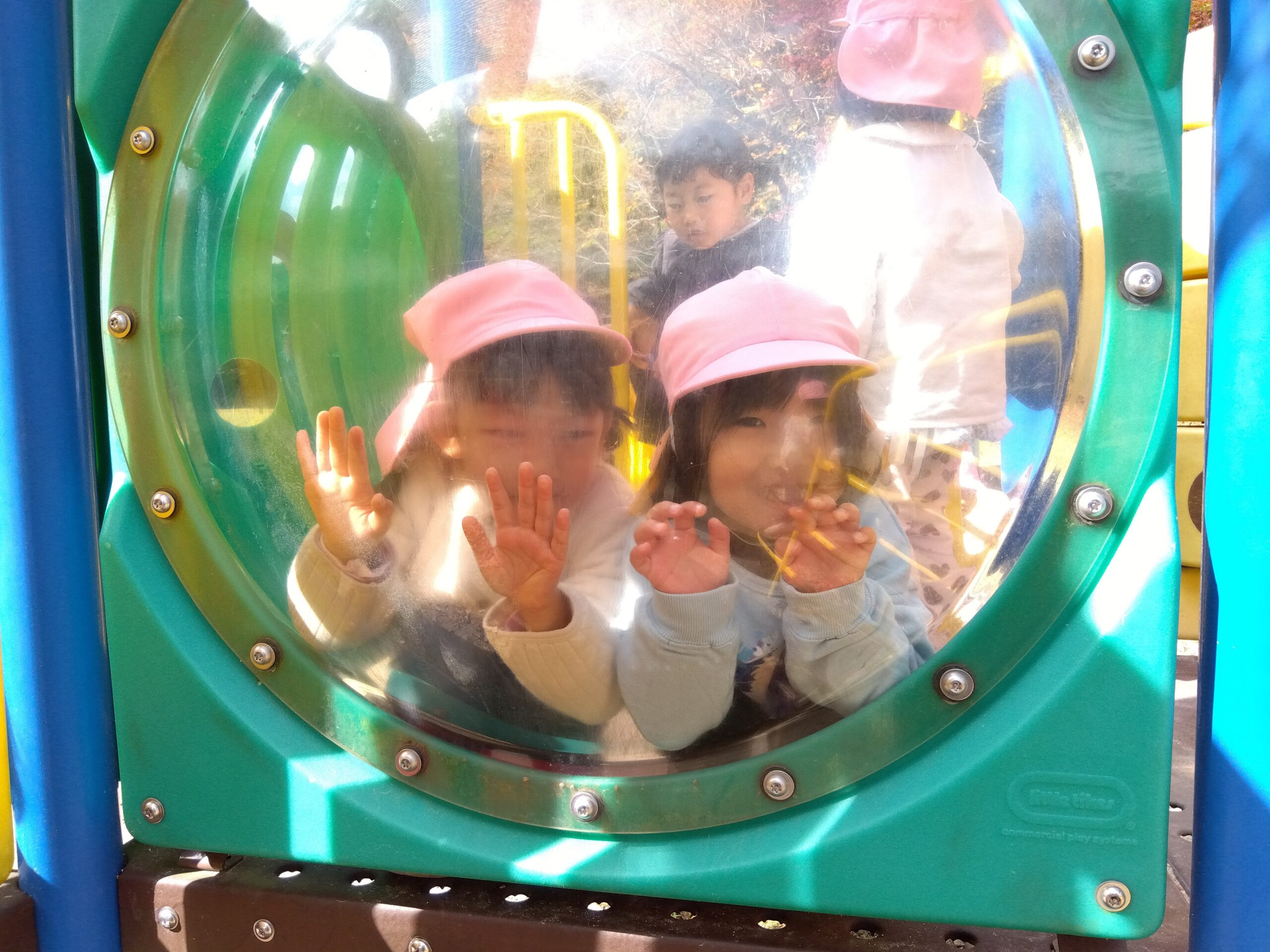 その後、小さな滑り台や汽車で遊び、あっという間におやつの時間です。