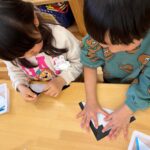 今日、小さいひよこぐみでは、感触遊びをしました。 ジップロックに透明な洗濯のりと青い絵の具を入れ、もんでいくと、2種類の液体がきれいに混ざっていく様子を見て、「わぁ〜」と驚く子どもたち。「やわらかいね」「きれいだね」とお...