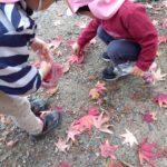 秋晴れの中、うさぎぐみの遠足に出かけました! そらぐみさんに手を繋いでもらい、楽園へ出発。 車や自転車が来ても、そらぐみさんがしっかり守ってくれました。 こどもの楽園についたら、まずは落ち葉探しに出かけました。 綺麗に葉...